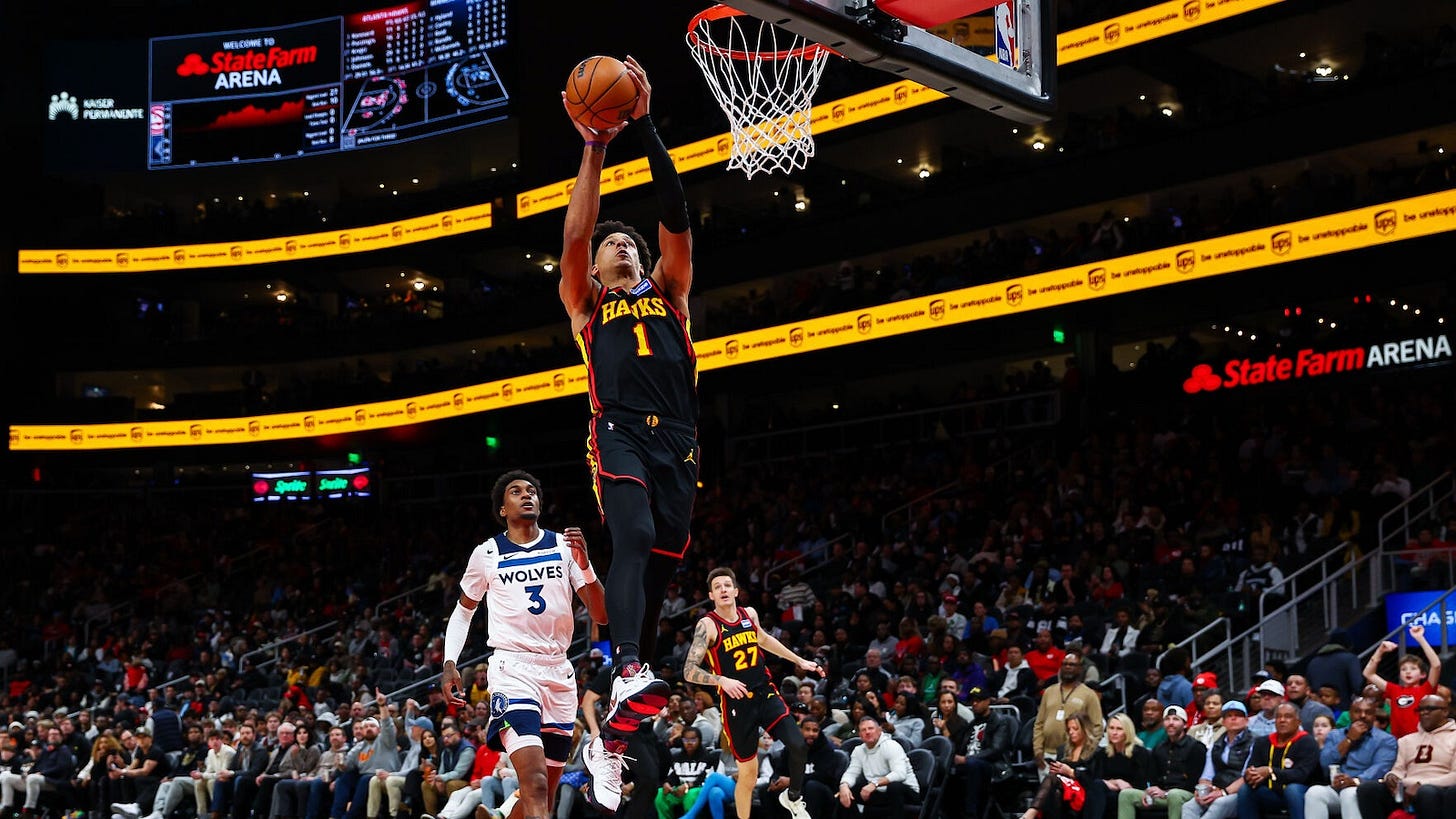 Jalen Johnson scored a game-high 34 points as the Atlanta Hawks snapped a seven-game losing skid with a 126-102 victory over the Minnesota Timberwolves. Johnson shot 15-22 from the field, hitting three of his six 3-point attempts. He added a team-high 10 rebounds, six assists, a game-high two steals (tied with two others), and one block in 32 minutes played.