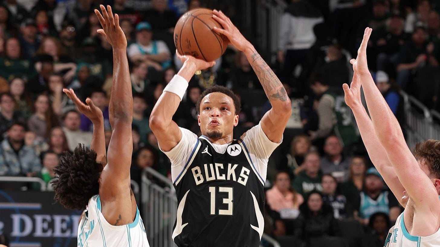 Ryan Rollins scored 29 points on 11-13 shooting from the field as the Milwaukee Bucks escaped with a 122-121 victory over the Charlotte Hornets. The red-hot Rollins sank six of his seven attempts from 3-point range. He added eight assists, four rebounds, a game-high three steals, and one block, committing just one turnover in 37 minutes played.