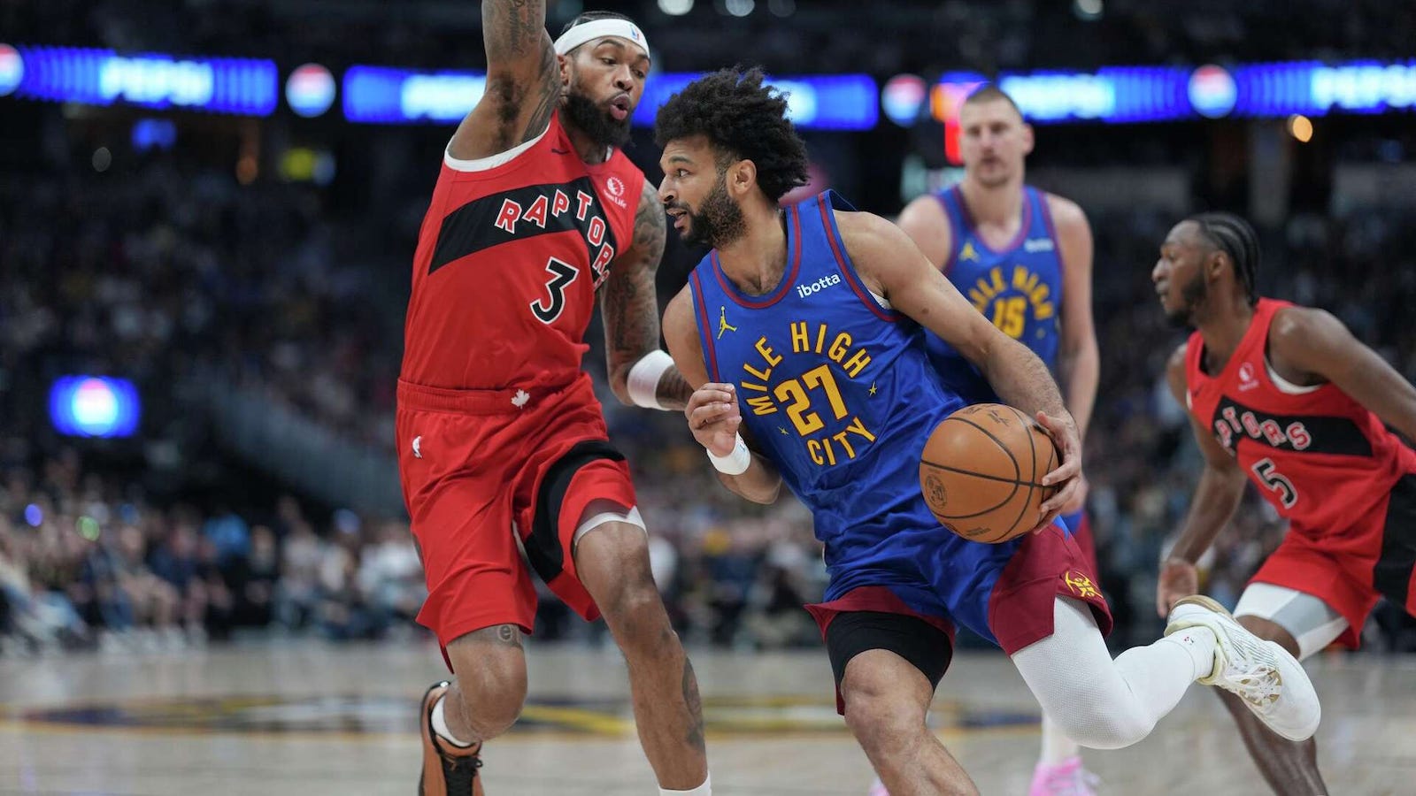 Jamal Murray scored a game-high 31 points to lead the Denver Nuggets to a 121-115 victory over the Toronto Raptors. Murray shot 10-18 from the field and 9-10 from the free throw line. He added six assists, five rebounds, and one steal, committing just one turnover in a game-high 40 minutes played.
